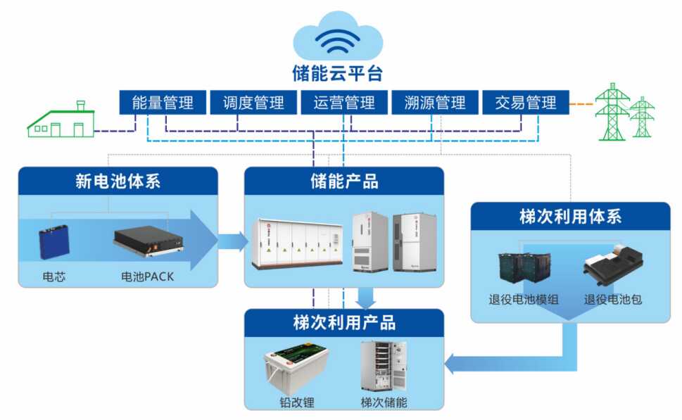 构建“三款产品、两套体系、一个平台”业态,不断攻克储能与梯次利用关键技术,实现储能产品全生命周期数字化管理,建设从电池—梯次利用—电池材料的低碳循环产业链。