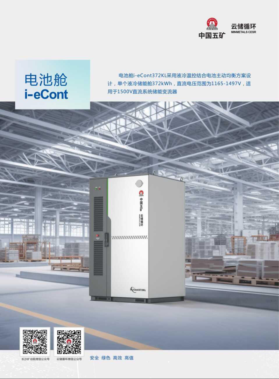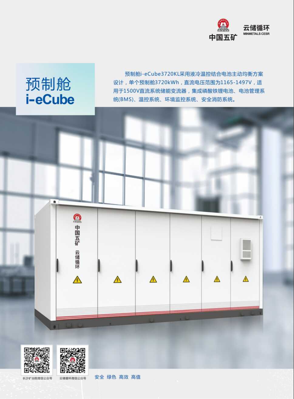 湖南云储循环新能源科技有限公司(简称“云储循环”)系中国五矿所属长沙矿冶院控股子公司。云储循环立足国家“双碳”战略目标,聚焦中国五矿退役电池循环利用产业,致力于储能产品开发,锂电梯次利用关键技术研发及退役电池规模化回收利用,实现锂电池能量价值高效利用和资源价值循环利用。主持或参与国家及省部级科研项目6项,获批专利30余项,参与制定团体标准5项,入选工信部“梯次利用”白名单,是湖南省退役电池梯次利用工程技术研究中心依托单位,2023年获批湖南省院士专家工作站。